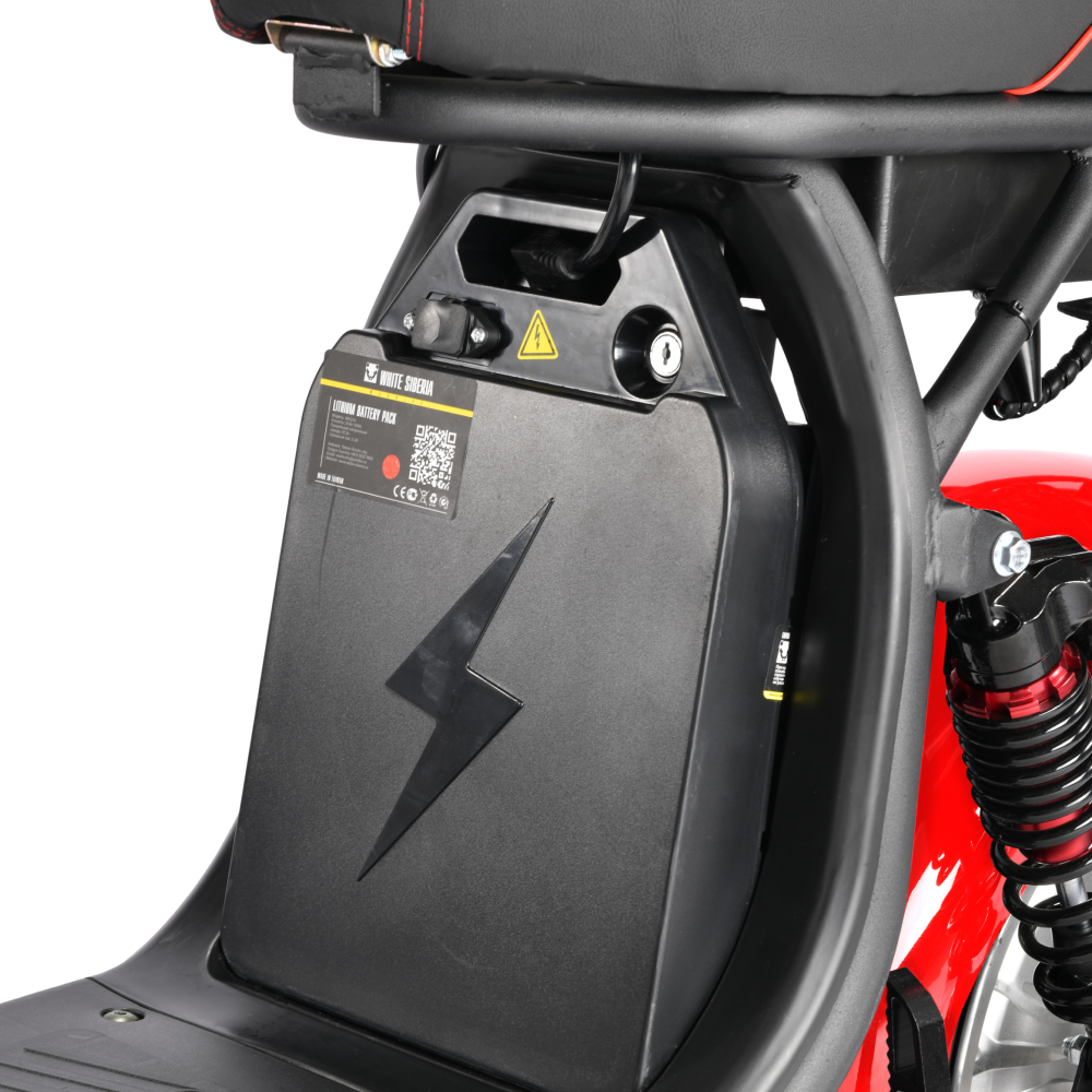 Есть возможность установки второго аккумулятора в отсек под седлом или же использовать его как «бардочок». Батарея – 60 вольт на 21 ампер. На двух аккумуляторах можно преодолеть 90 км без подзарядки. Максимальная дальность хода зависит от погодных условий, веса райдера, поверхности, по которой вы передвигаетесь и стиля вождения.