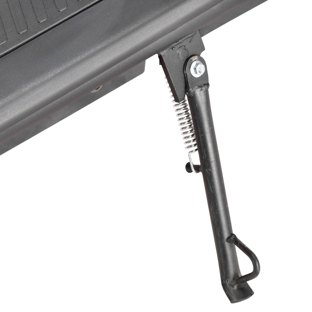В центре руля расположен дисплей, где отображается текущая скорость, уровень заряда аккумулятора, индикаторы поворотников и света. Нагрузка электроскутера – до 260 кг, то есть передвигаться можно на нем вдвоем.