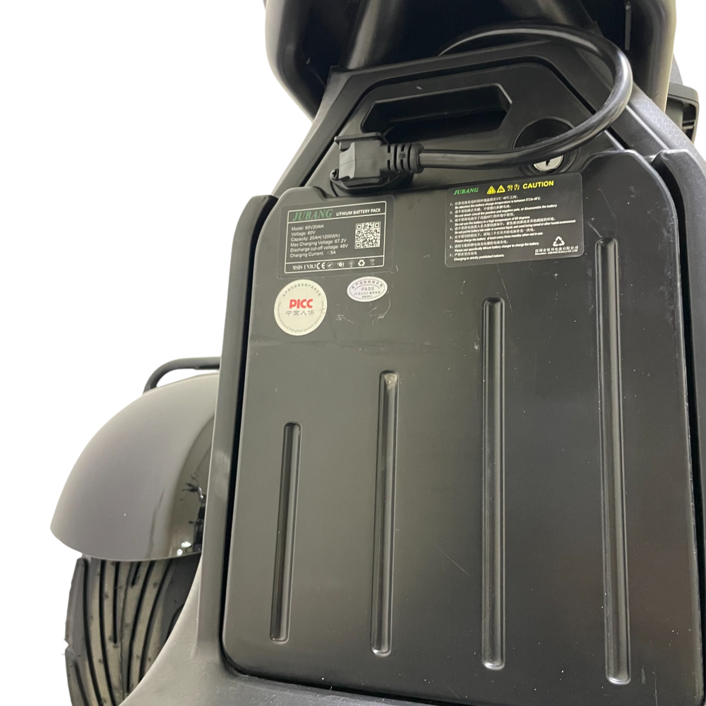 Тип аккумулятора Li-Ion с емкостью 20 Ah и напряжением 60 V гарантирует длительный пробег без подзарядки.