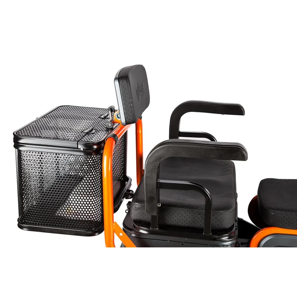 Повышенная устойчивость объясняется широкими колесами с протекторным рисунком для лучшего прохождения тс по неровной дороге. Модель обработана специальным сверхпрочным покрытием, надежно защищает от повреждения металла коррозией и различных деформаций. Максимальное прохождение расстояния на одном заряде обеспечивается долговечным аккумулятором электротрицикла. Приятной неожиданностью пользователю станет наличие охранной сигнализации с фирменными брелоками для защиты от угона.
