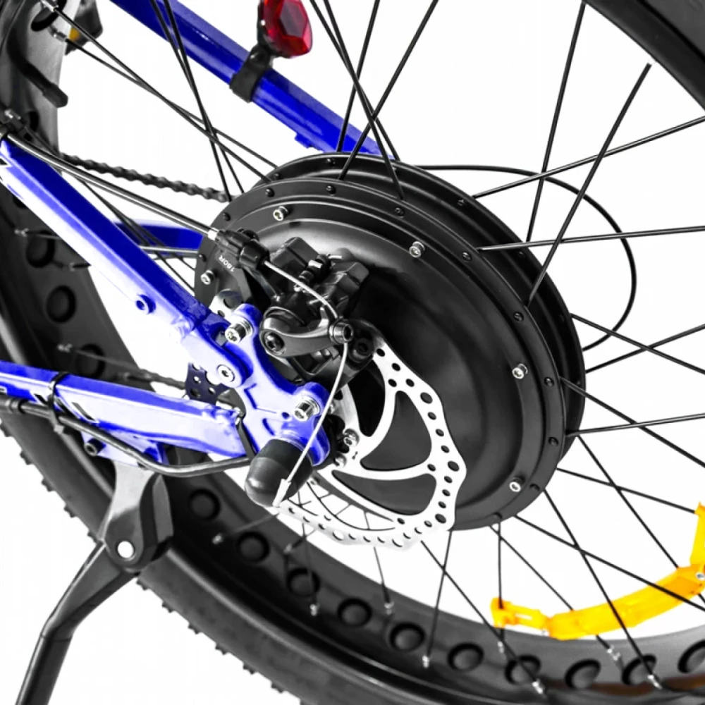 Оснащена электромотором мощностью 1500 Вт и емкой батареей на 13 А*ч, размещенной в раме. Технические характеристики позволяют развивать скорость до 45 км/ч и преодолевать на одной подзарядке 75 км пути. Особенностью модели является вездепроходимость и высокая степень комфорта. Модель оснащена внедорожными 26-дюймовыми колесами, рассчитанными на езду во всесезонье. Седло – мягкое, регулируемое, снимает нагрузку с позвоночника, минимизирует ощущение усталости, оснащено подседельными амортизаторами. Алюминиевая складная рама надежная и прочная, не деформируется при эксплуатации в жестких условиях. Рулевая часть не складывается, регулируется по высоте и углу наклона. Торможение проводится за счет оснащения техники передней и задней дисковой механической системой.