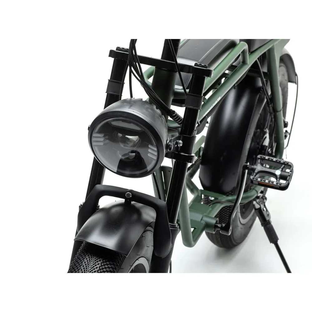 Эффективность движка в 500W перед бензиновыми аналогами ощутима, а компактные габариты позволят эффективно передвигаться между машинами и пешеходами, чтобы оказываться в нужной точке вовремя. У велосипеда есть три электрических скорости и 7 механических, а максимальная скорость, с которой вы сможете ехать - 35 километров в час. Запас хода аккумулятора Li-Ion 48V 10,4Ah хватает на расстояние до 50 километров. Основа велосипеда - рама, сделана из высокоуглеродистой стали, очень крепкого и надежного материала.