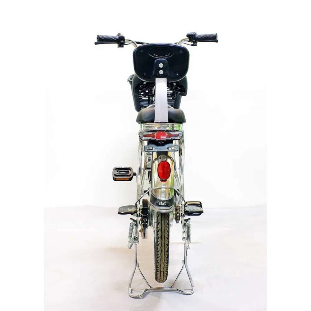 Из технических особенностей производитель акцентирует внимание на легкости рамы. Облегченная модель весом 29 кг способна выдерживать массу 160 кг. Это стало возможным благодаря алюминию, надежному и практически не подвергающемуся коррозии. Безопасность передвижения гарантирована проверенной дисковой тормозной системе. Для экстренной остановки не обязательно применение силы, электровелосипед останавливается при легком нажатии.