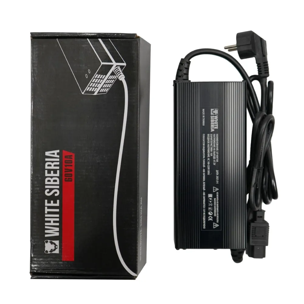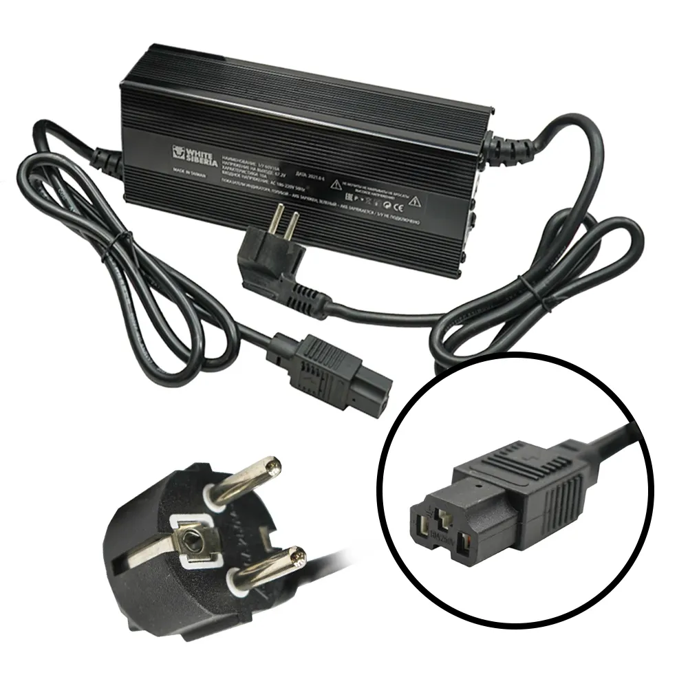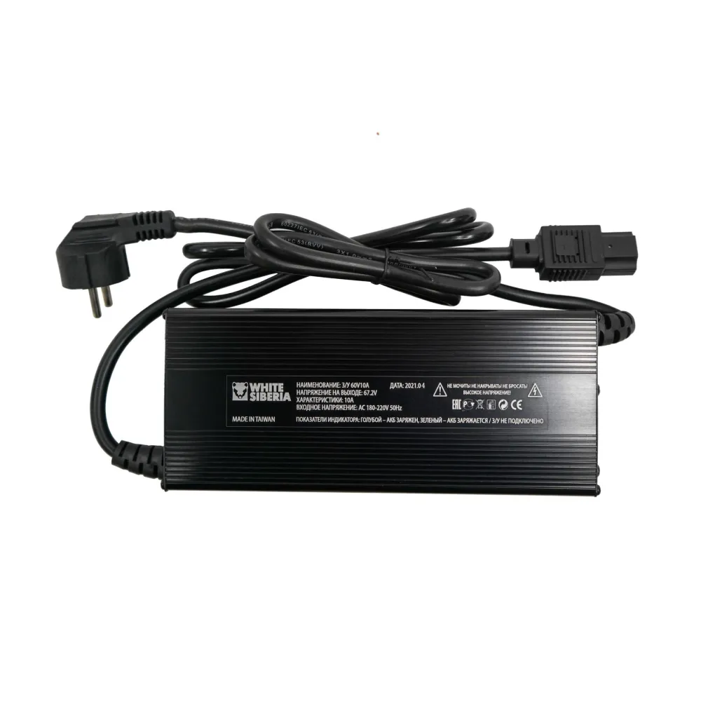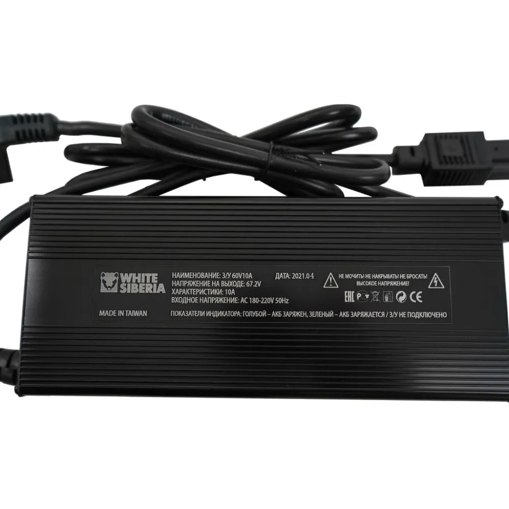 Быстрое зарядное устройство 60V10Ah White Siberia — ваш идеальный помощник для эффективной зарядки литиевых аккумуляторов. С напряжением 67,2V и мощностью 10Ah, оно способно зарядить АКБ 60V21A с 0 до 100% всего за 2-2.5 часа. Устройство имеет удобную конструкцию с длиной провода от гнезда зарядки до корпуса 85 см и от корпуса до вилки 80 см, что обеспечивает гибкость размещения. Вес всего 1,28 кг делает его портативным и удобным для транспортировки. White Siberia — это сочетание надежности и быстроты, созданное для тех, кто ценит свое время и требует максимальной эффективности от зарядного устройства.