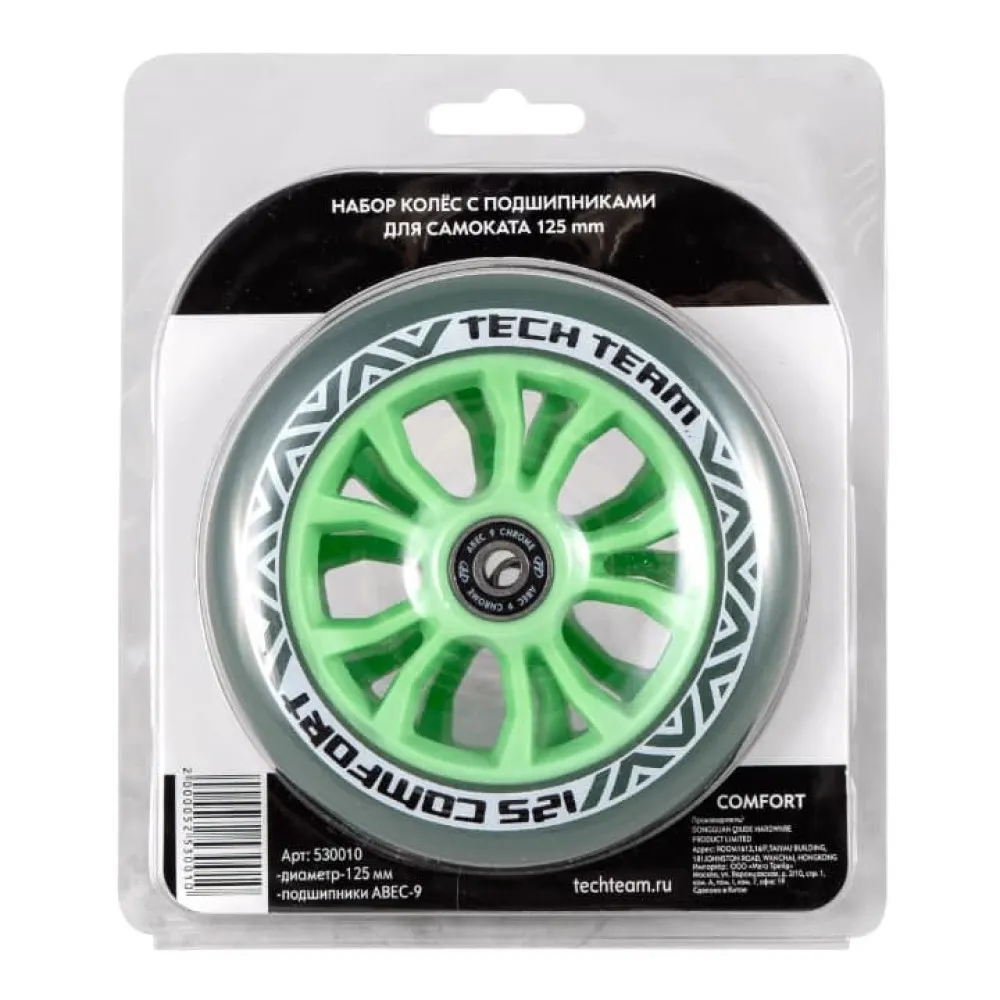 Набор колес с подшипниками для самоката 125мм (зеленый)